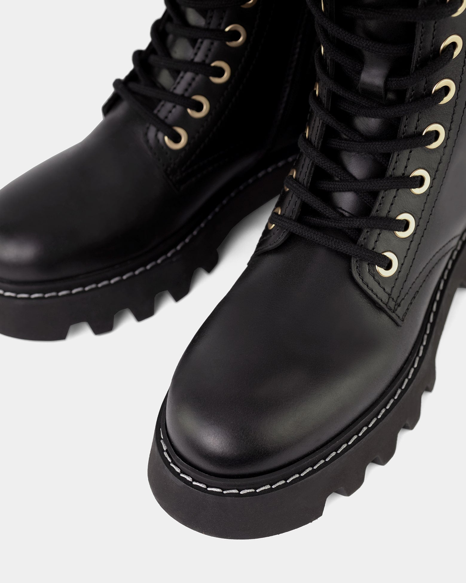 Super light black leather lace-up boots.